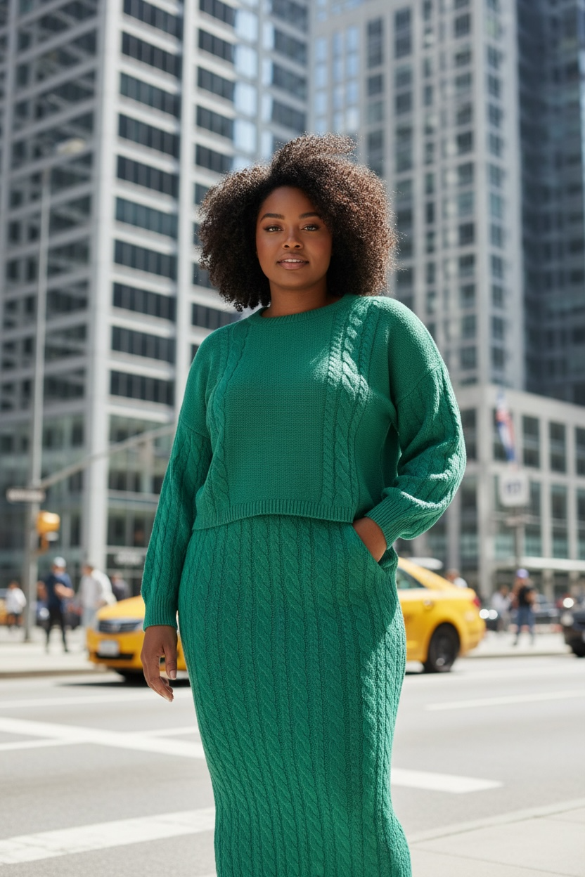 CONJUNTO SAIA MIDI E BLUSA EM TRICOT